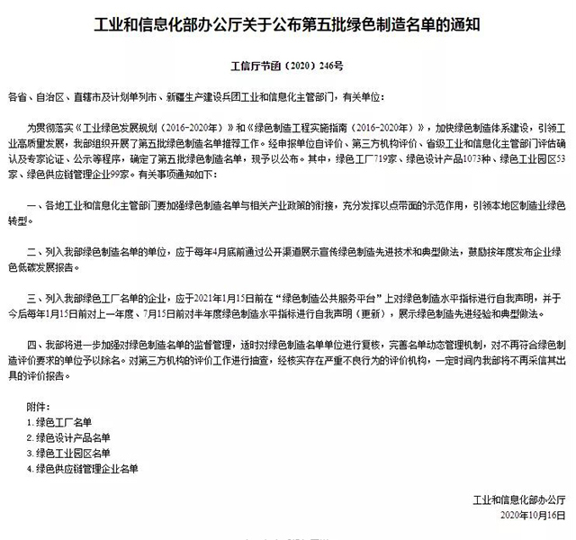 圖丨第五批綠色制造名單節(jié)選